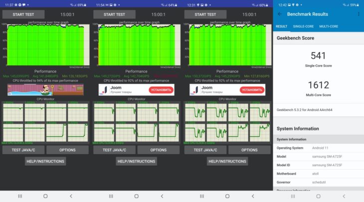 А вот по части автономности Galaxy A72 имеет более емкий аккумулятор на 5000 мАч, обеспечивающего до 40 часов работы в режиме разговоров. Тем не менее Xiaomi 11 Lite 5G NE тоже демонстрирует хорошую автономность благодаря батарее на 4250 мАч. Плюс у него более мощная зарядка, поэтому заряжается он быстрее своего соперника.